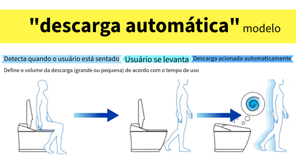 Ao se levantar do assento do vaso sanitário, a descarga é automática. Muitos turistas ficam impressionados com esse recurso, pois não há necessidade de operá-lo. Eu fiquei realmente impressionado quando experimentei pela primeira vez.